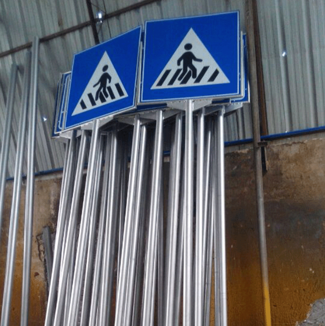 3、杆体整体热镀锌单色喷涂,贴红色3M工程级反光膜;