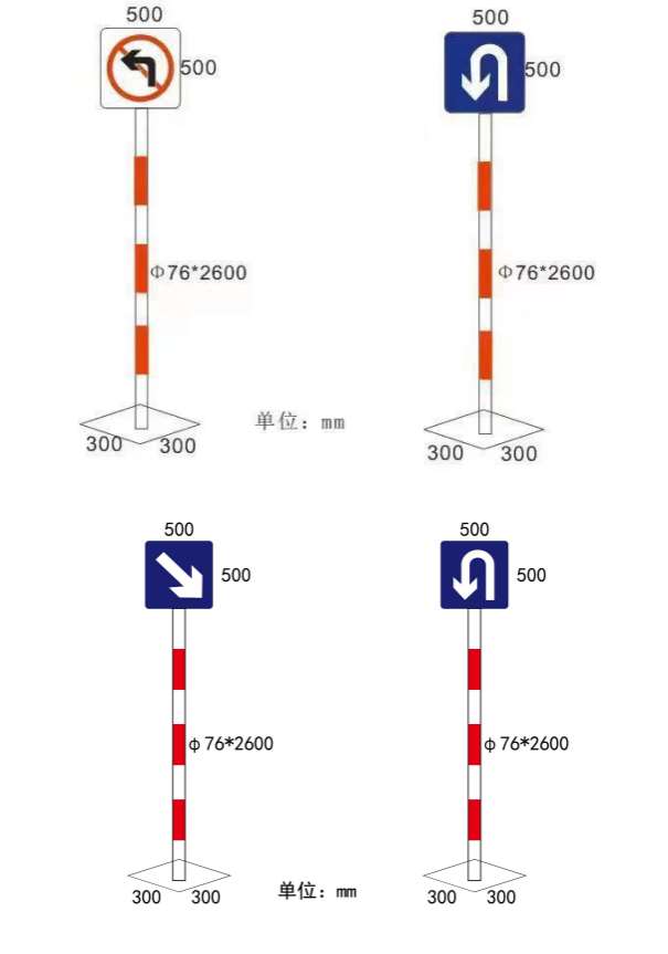 4、标志牌尺寸可定制。常见规格为为600*600,500*500,1060铝板,板厚2mm,贴3M工程级反光膜